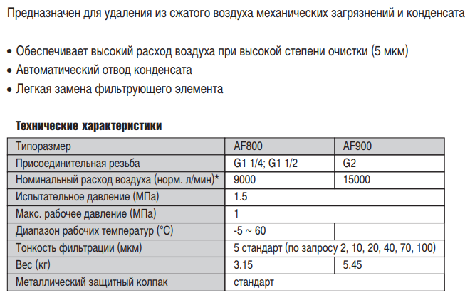 Удаление из сжатого воздуха механических загрязнений и конденсата.