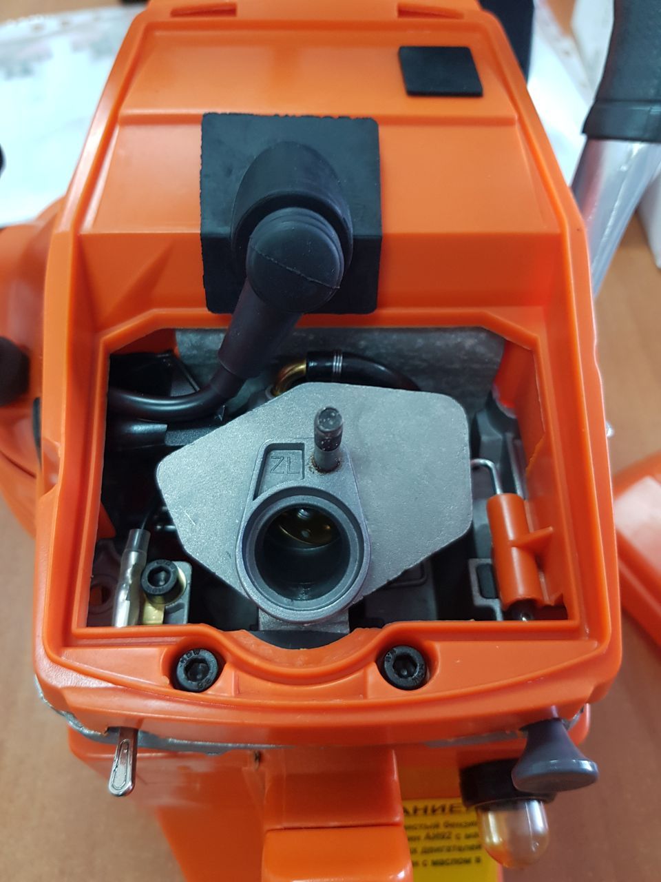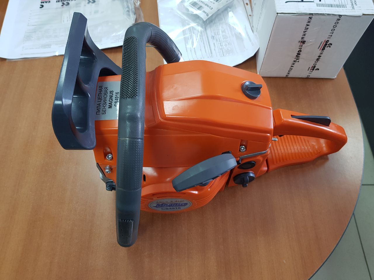 Комплектация: Бензопила, шина, цепь, защита шины, свечной ключ, емкость для смеси, инструкция