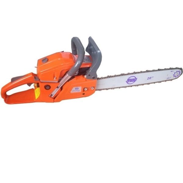 Комплектация: Бензопила, шина, цепь, защита шины, свечной ключ, емкость для смеси, инструкция